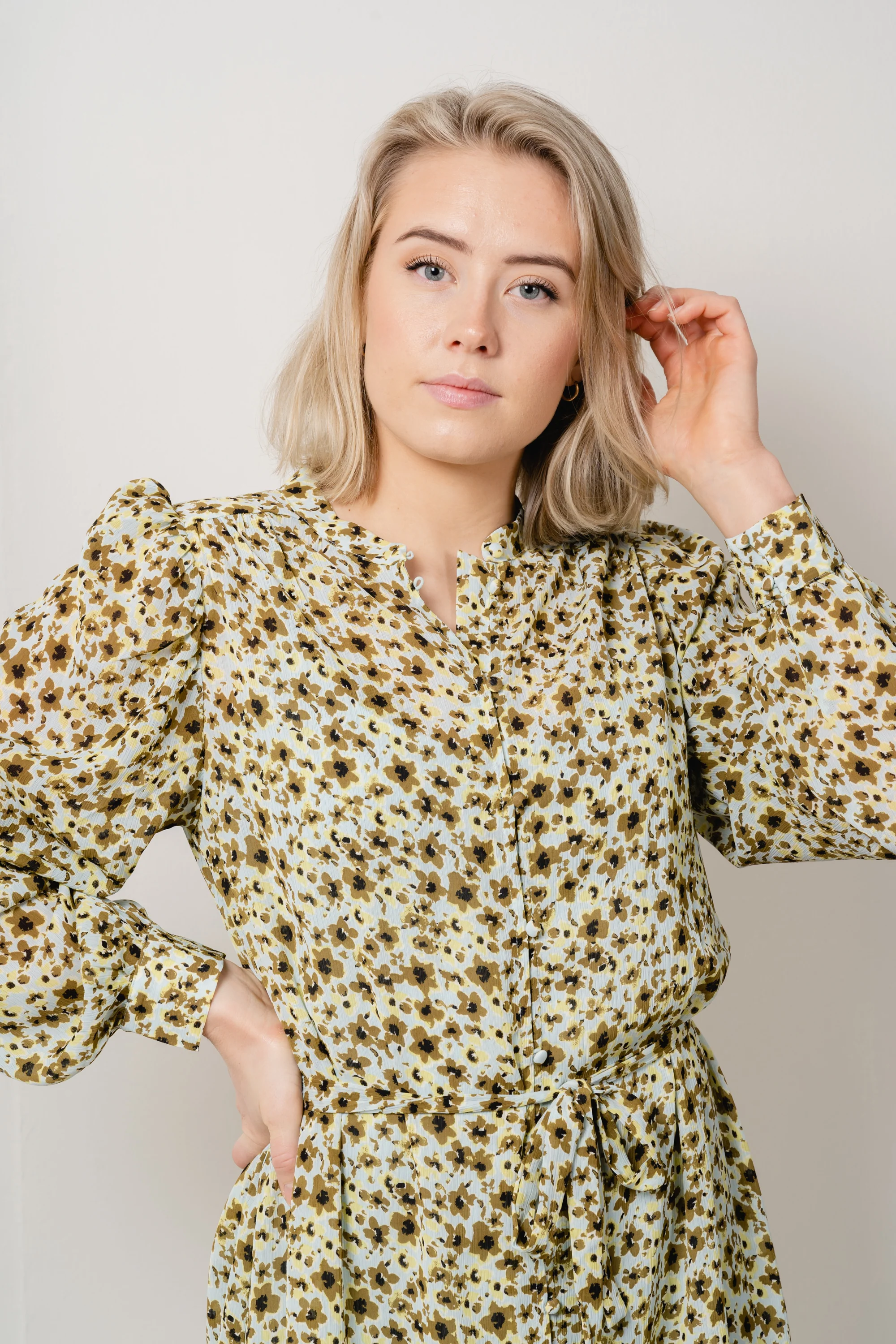 Adalia Rikkelie Shirt Dress fra Moss Copenhagen. En vĂĄrlig, fin skjortekjole fra Moss Copenhagen. Adalia Rikkelie Shirt Dress har lange, løsere ermer med mansjett og liten puff pĂĄ skuldrene. Kjolen har rund hals, en løs passform og knappestolpe i front.Â