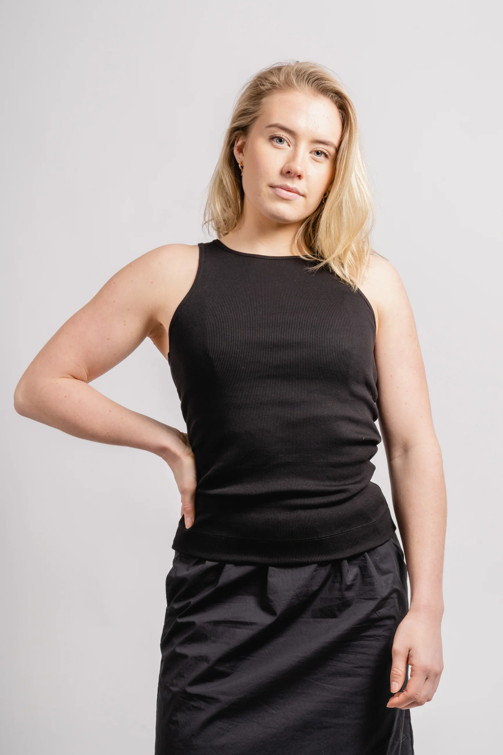 Amani fra By Malene Birger. Denne midweight toppen er en chic versjon av en casual must have. Det lett ribbede designet har en sjenerøs scoop-utringning. Ideell for lag-på-lag, eller under en blazer.