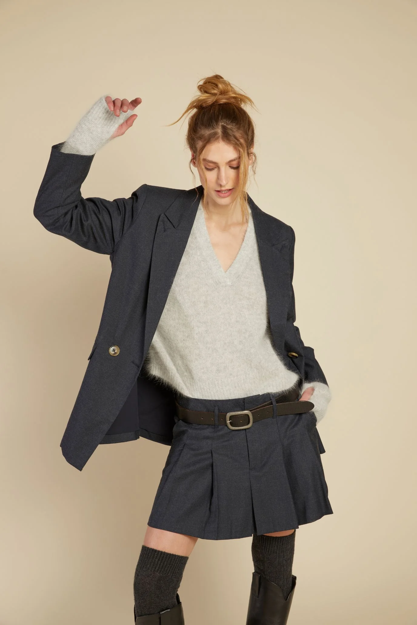 Carro fra Line of Oslo. Elegant og myk strikkegenser fra Line of Oslo. Carro er en nydelig strikket genser, i en herlig pusete angora-miks med V-hals og lange ermer med tommelhull.