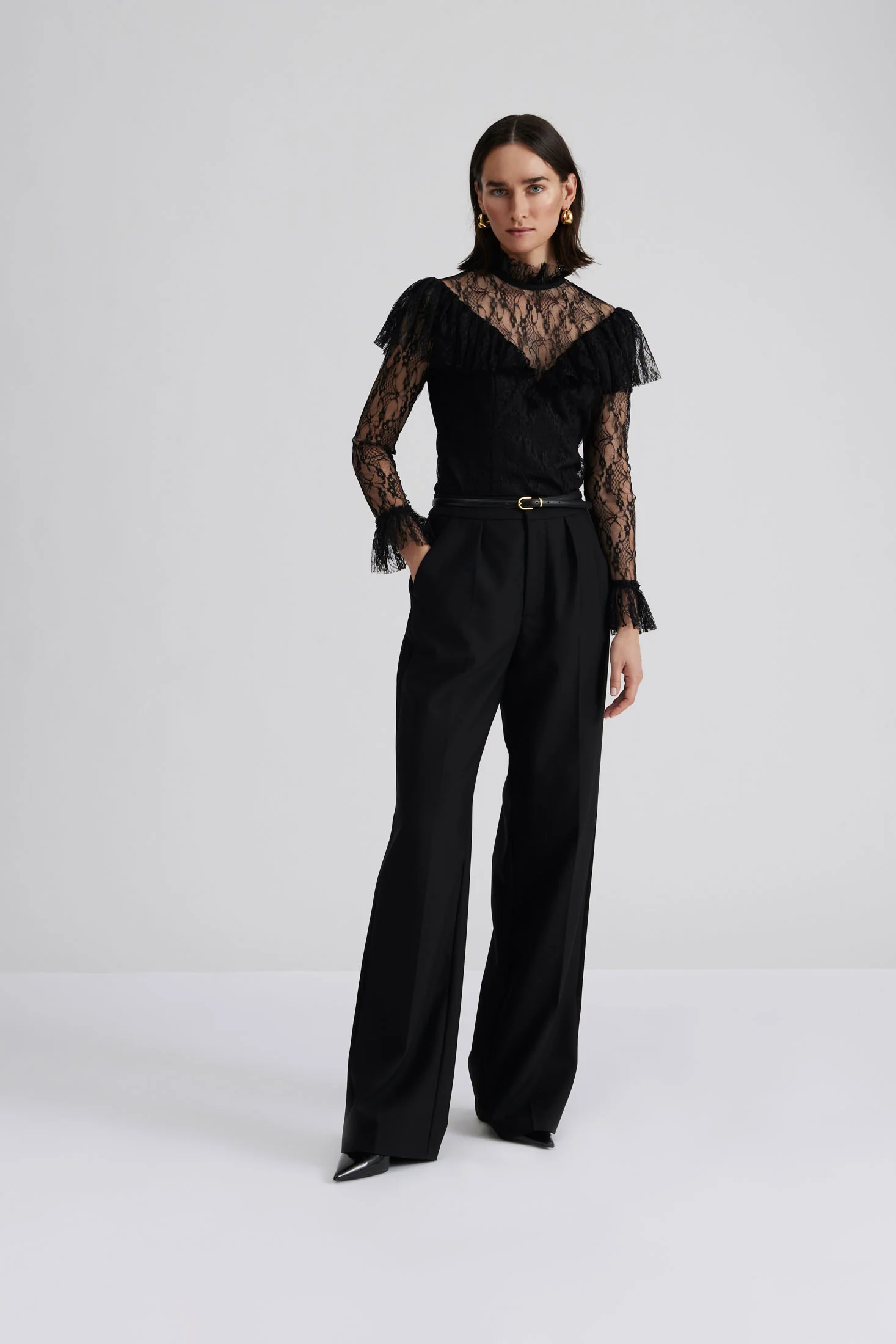 Joelle Polo Neck Lace Top - Black