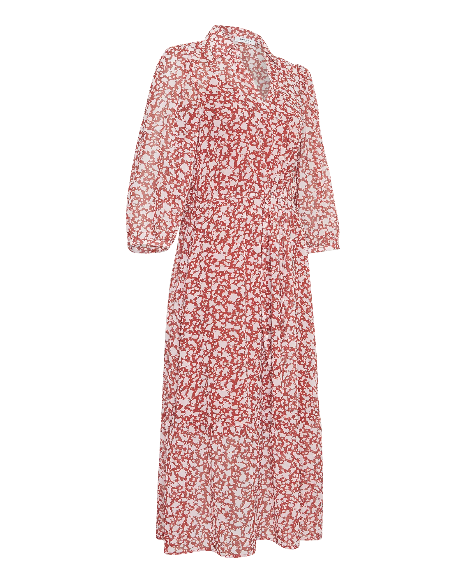 Marlea Kabrina 3/4 Dress fra Moss Copenhagen. En superfin midikjole fra Moss Copenhagen med et rosa og rødt print. Marlea Kabrina 3/4 Dress har 3/4 lange ermer med liten puff på skuldrene. Kjolen har en løs passform med snøring i midjen, slik at du kan skape en mer definert silhuett. Knappelukking til midjen, krage og V-hals.