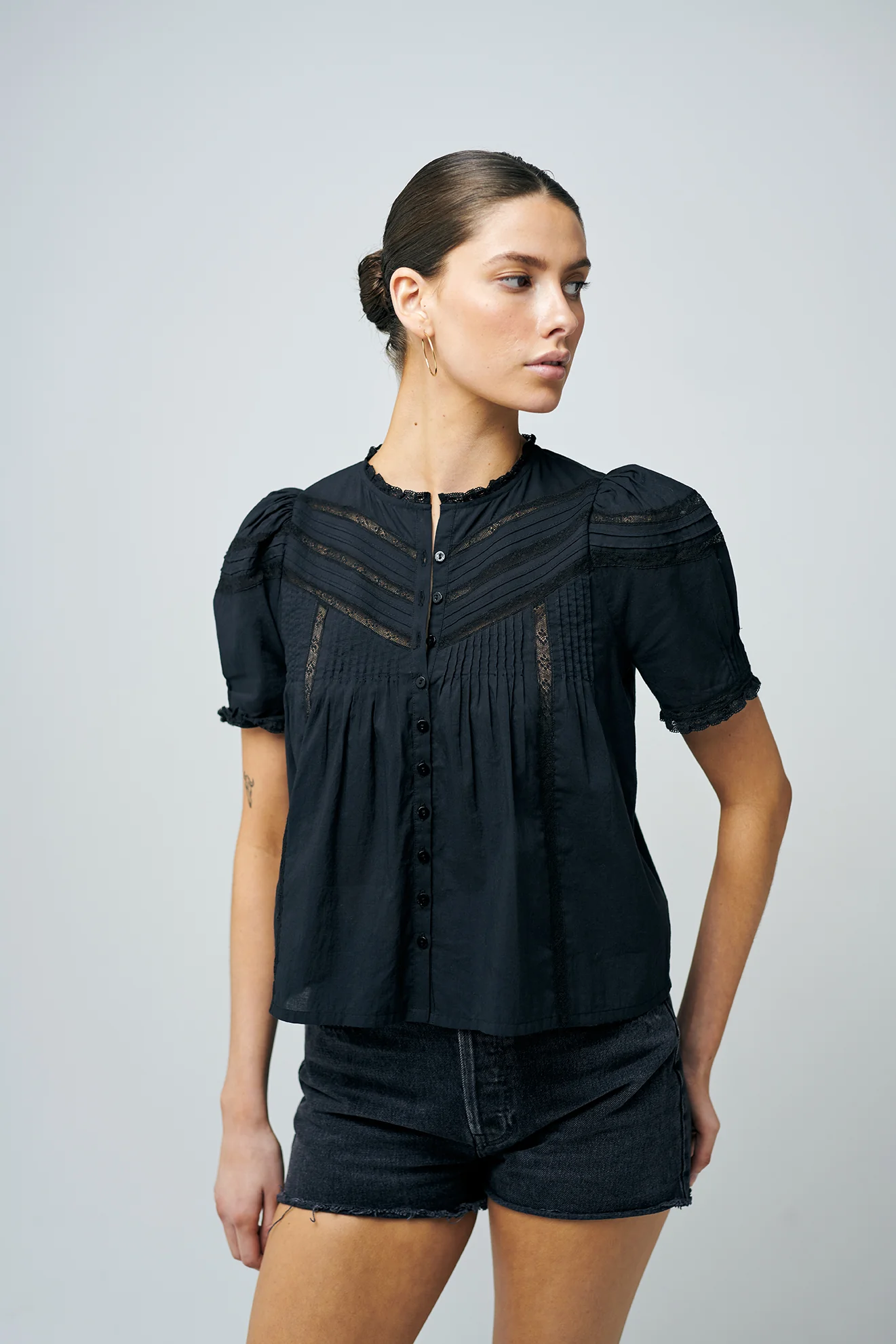 Willow Blouse fra Pia Tjelta. Si hei til Willow Blouse - den fineste blusen fra Pia Tjelta! Den har korte ermer med blondedetaljer og puff, små blonder i halsen og knappestolpe i front. Bruk den like gjerne til et skjørt som til jeans for en mer avslappet look.